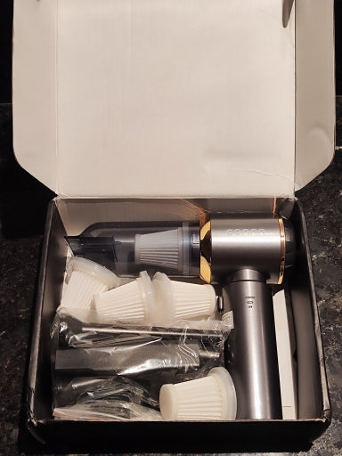 The package includes the vacuum and 9 versatile accessories, featuring over 6 specialized nozzles. This multifunctional kit allows you to clean hard-to-reach crevices, air vents, and under seats with ease. It even includes options for blowing dust, making it a complete, all-in-one detailing solution for your vehicle.
